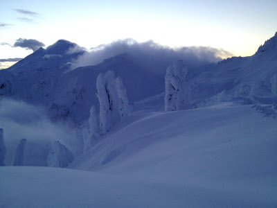 I think in all we had a group of about 14 persons. A brave minority even set up tents and stayed the night. Bravo! Most like I though went up, and then came down for dinner at Chair 9 in Glacier. Staying wasn't an option for me, because I had to be back in town for a special birthday event in the evening. However, I will note that it was very cold up top. I'm guessing it was about 5 degrees on Artist Point, and then 20 degrees only a few 100 meters lower.